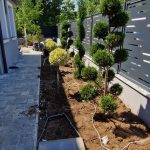 Cu gazonul deja montat, am început să ne ocupăm de plantarea florilor și plantelor decorative. Am creat straturi bine definite în jurul gazonului, unde am plantat flori perene, arbuști mici și câteva plante decorative de dimensiuni mai mari. Am ales flori și plante care nu doar arată frumos, ci și completează armonios designul grădinii.